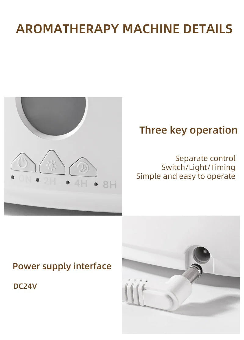 Designed with your peace of mind at its core, this aromatherapy machine operates at a whisper-quiet level of less than 30db, ensuring that your moments of reflection, work, or repose remain undisturbed. Convenience is paramount, evidenced by the included wireless remote control and intuitive on-device three-key operation for power, light settings, and timer functions (2, 4, or 8 hours). Safety is also integral, with a built-in water-shortage power-off protection system. The stable, anti-slip base and durable ABS, PP, and PC construction ensure longevity and steadfast performance. Powered by a DC24V interface, it's an energy-efficient addition to your household (2W power consumption).